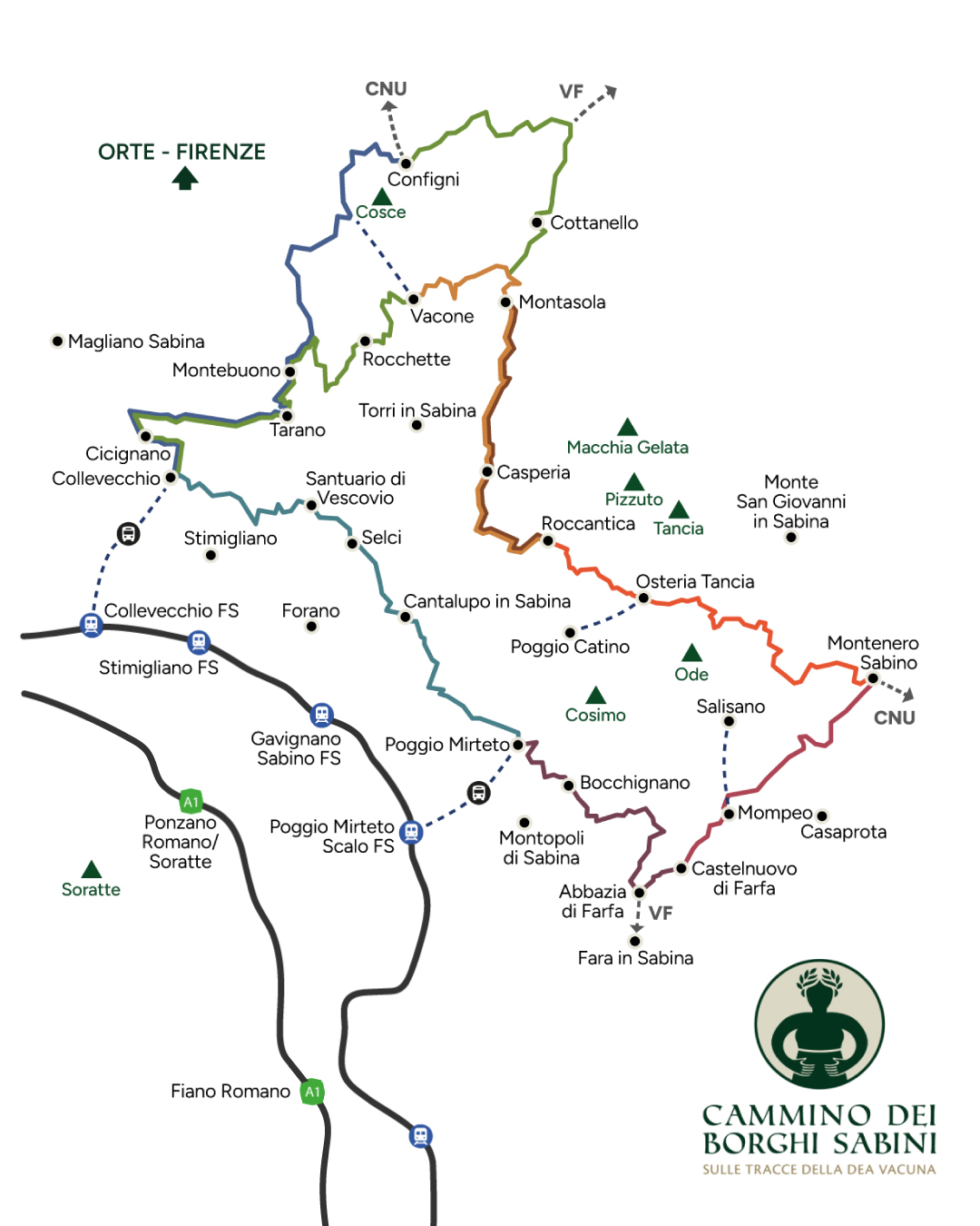 Il Cammino dei Borghi Sabini è un itinerario che si sviluppa per circa 100 km, percorribile in 6 o 7 tappe, ognuna con una propria identità.