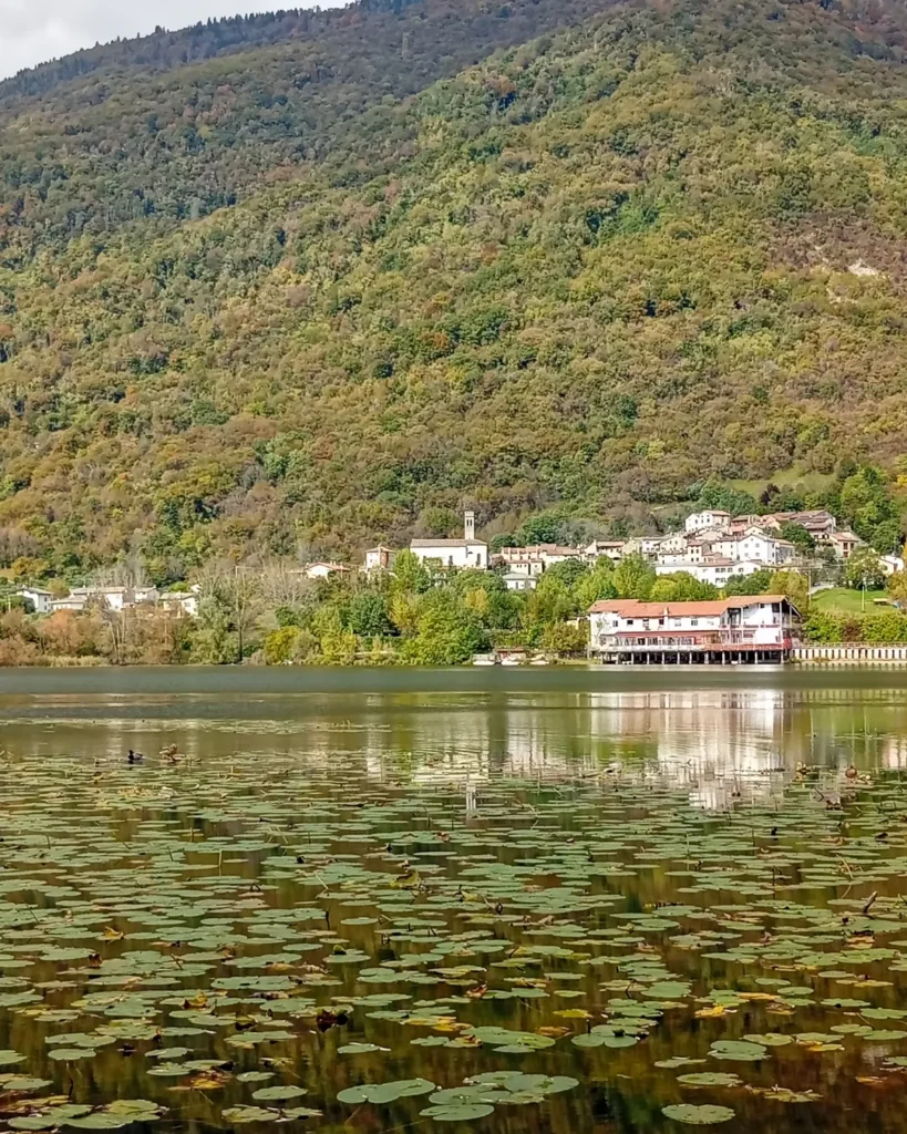 Ho scelto di fare la variante bassa per motivi di sicurezza. Essendo da sola, la mia sicurezza e la mia tranquillità sul cammino sono fondamentali. Da Tarzo sono arrivata sulla via dei murales di Colmaggiore e al parco dei laghi di Revine. A questo punto mi sono illusa ed ho pensato che le salite fossero finite. E poi, eccolo lì: salita con il 15% di pendenza. Finisco il mio panino allo speck, mi godo un cucchiaio di nutella e riparto affrontando la salita.