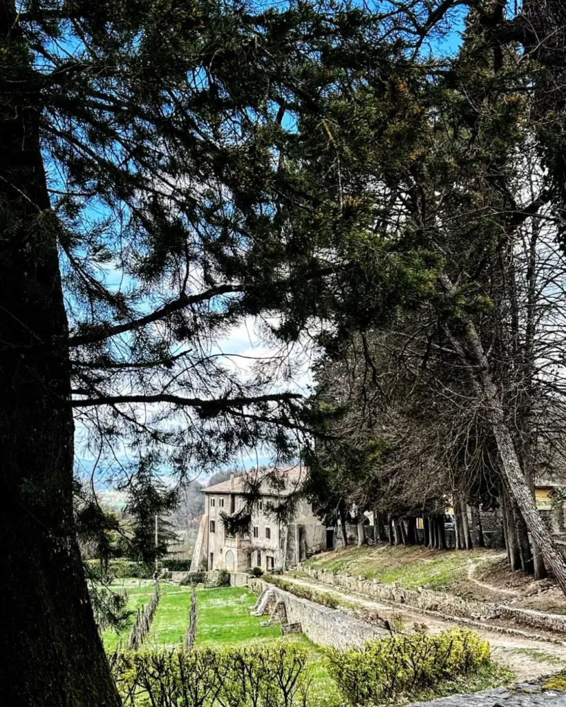 Da Contigliano il sentiero prosegue, si allontana nuovamente dai centri abitati, e inizia la salita che prima mi porta all’abbazia di San Pastore, complesso benedettino da poco restaurato, e poi al borgo di Greccio. Non mi fermo perché voglio arrivare al santuario di Greccio prima della chiusura e prima della pioggia, ma la strada è in discesa e in breve arrivo ai piedi del convento.