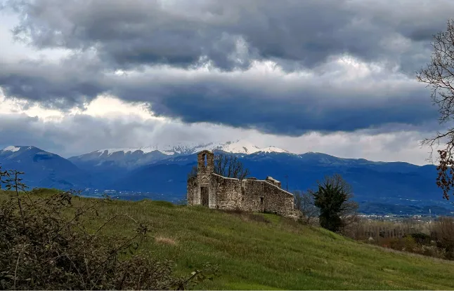 Ancora una volta mi lascio alle spalle il borgo, e proseguo per una strada asfaltata che mi costringe continuamente a fermarmi per guardarmi indietro e percorrere con lo sguardo le pendici imbiancate del Terminillo, fino a che non scompare dietro le cime dei rilievi più bassi. Soltanto qualche chilometro mi separa dall’ultimo santuario francescano toccato dal cammino, quello di Foresta.
