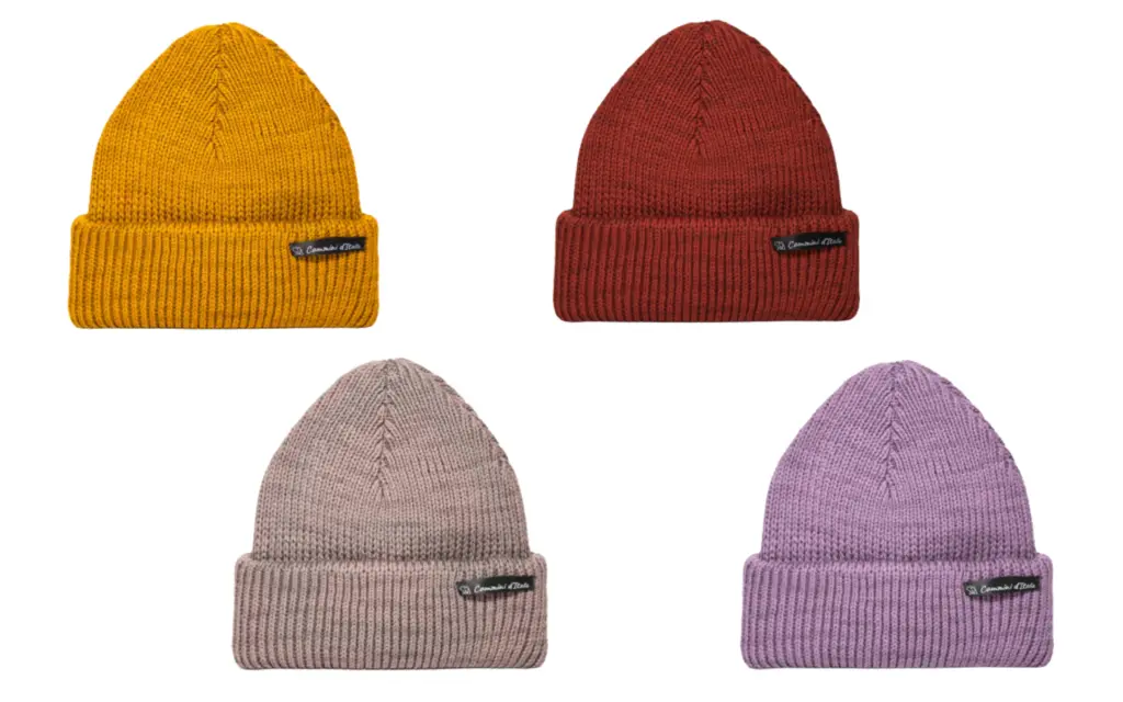 Il cappello è unisex e disponibile in quattro colori (ruggine, ocra, tortora, glicine).