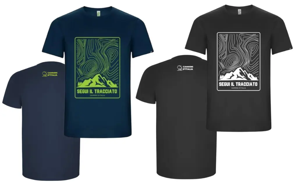 Per chi cerca una t-shirt che racconti la passione per i cammini, questa linea con illustrazioni è perfetta.