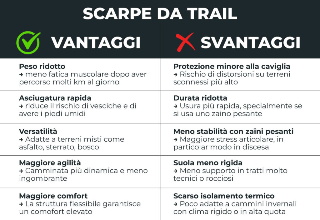 Vantaggi e svantaggi delle scarpe da trail