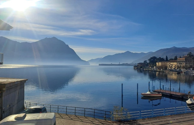 Esco dal B&B che mi ha ospitato per la notte quando è ancora buio. Sono abbastanza in alto rispetto al lago e le luci danno un senso di magia: sarà l’aria del Natale che si avvicina, ma con quello che vedo mi sembra proprio di vivere in un presepe. La tappa di oggi è tutta un saliscendi; a fine tappa i metri di dislivello saranno 900.