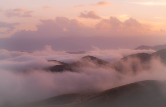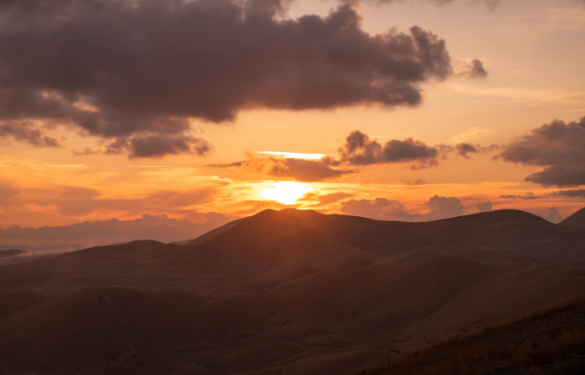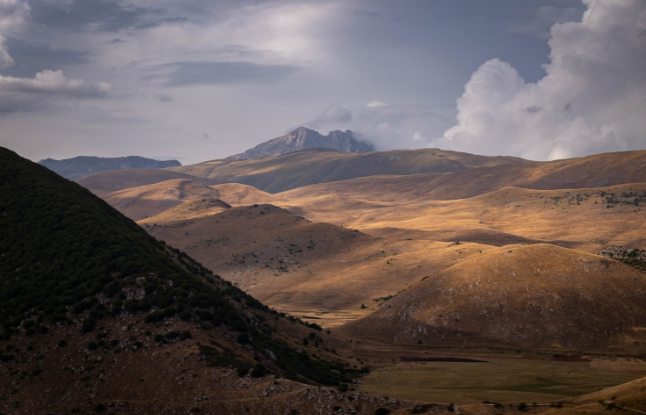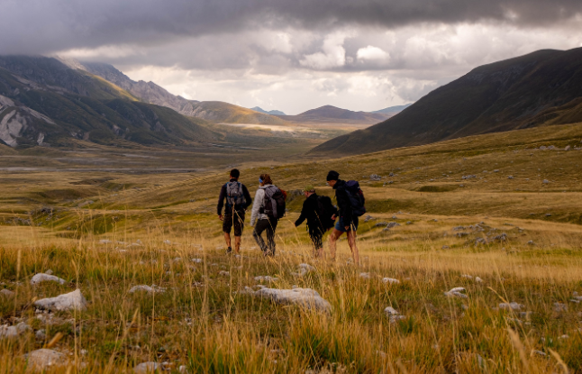 Poco dopo il panorama cambia ulteriormente e ci troviamo immersi in un paesaggio montano, con pareti rocciose che, immerse nelle nuvole, si lasciano scorgere solo ogni tanto e altipiani erbosi che ci accarezzano le gambe. Poco prima di raggiungere l’abitato di Castel del Monte, come se fosse la ciliegina sulla torta di questo primo giorno di cammino, assistiamo ad un tramonto mozzafiato che ci accompagna fino all’Albergo Parco Gran Sasso dove, stanchi ma felici, ci aspetta una cena da leccarsi i baffi, con cibo tipico abruzzese e vino regionale.
